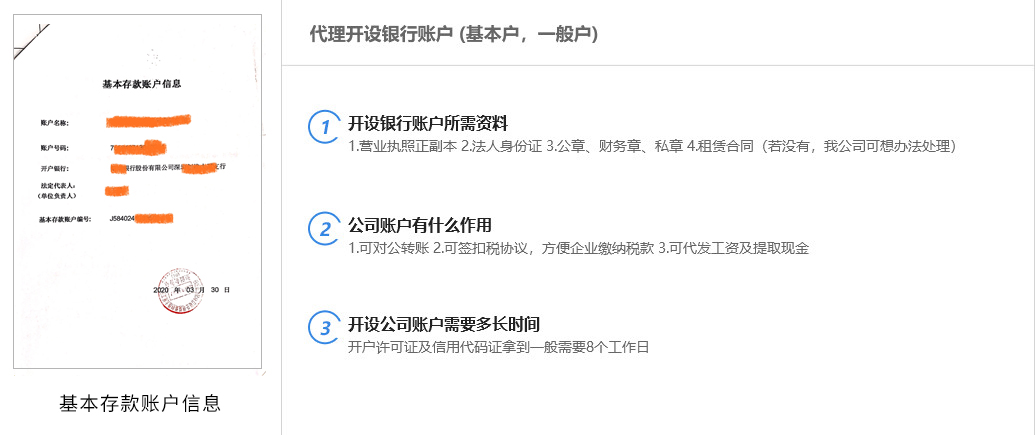 工商注册、记账报税、工商变更、工商注销、商标注册、税务筹划、银行开户、香港注册开户、各类许可资质代办、审计报表等